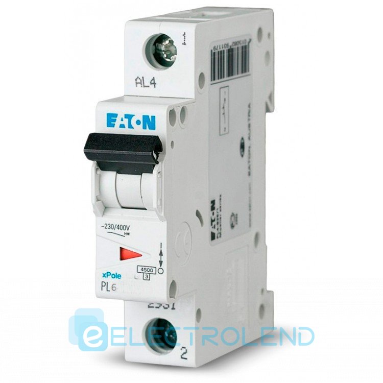 Автоматический выключатель PL6-C6/1 C 1P 6А 6kA Eaton 286530