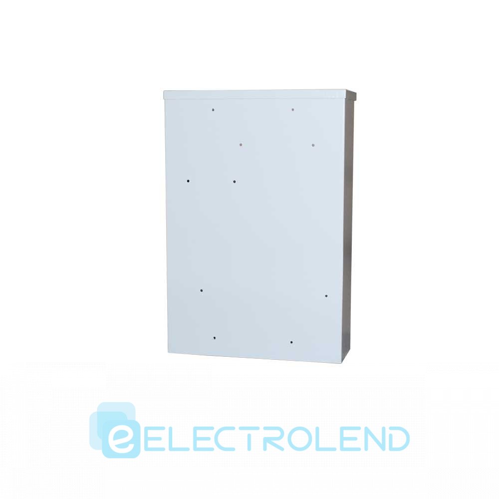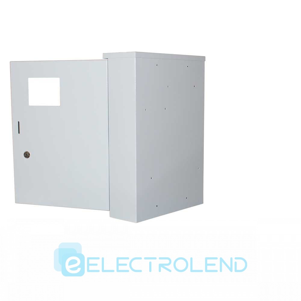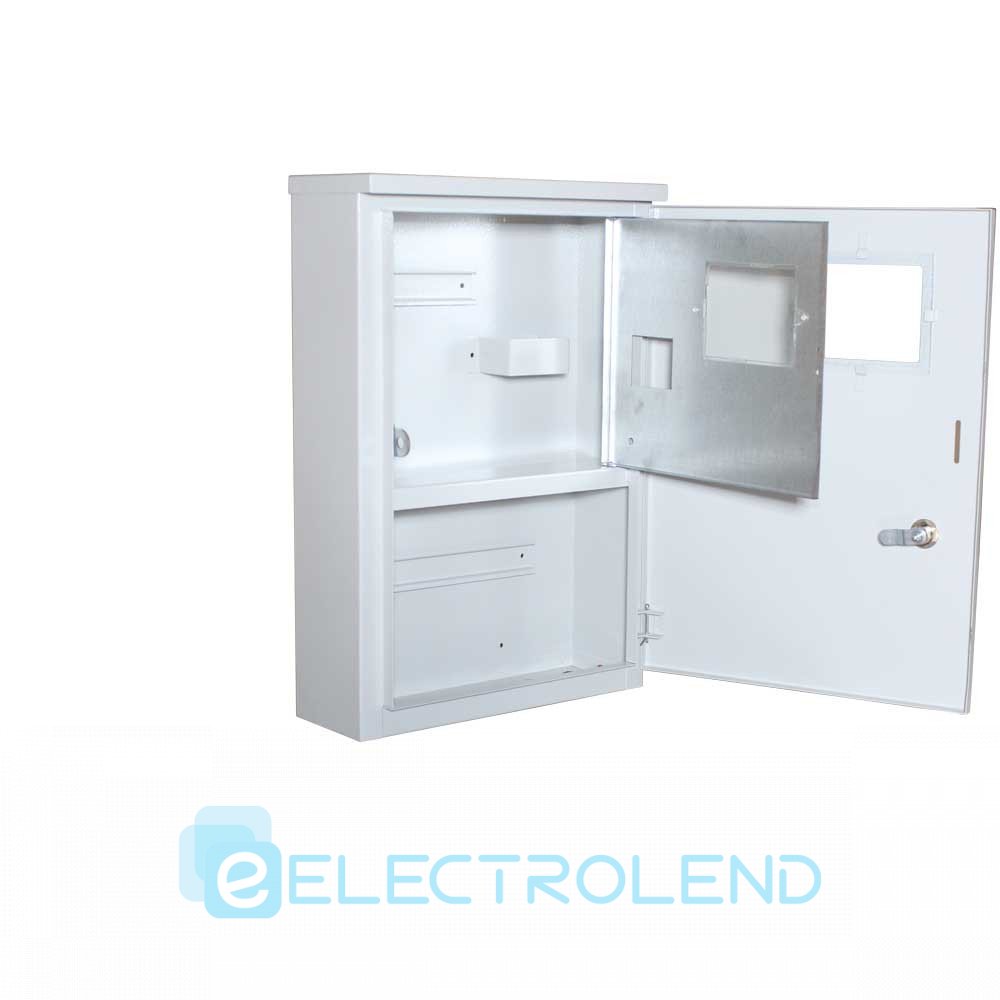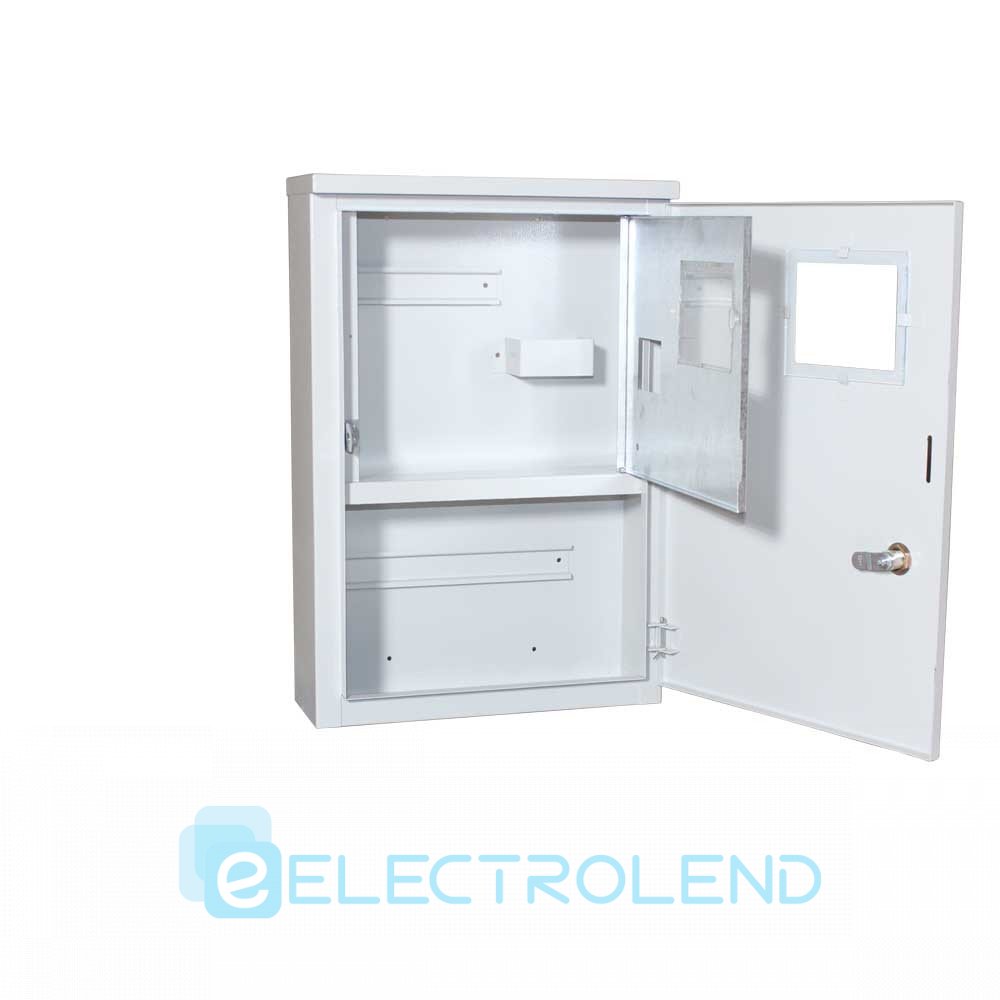 Двухдверный, под 1ф или 3ф счетчик, вводный 3-х полюсный автомат, автоматические выключатели до 12 групп, с окошком на наружной дверце для снятия показаний счетчика. На дне выполнено три отверстия диаметром 26 мм под сальник диаметром 25 мм.