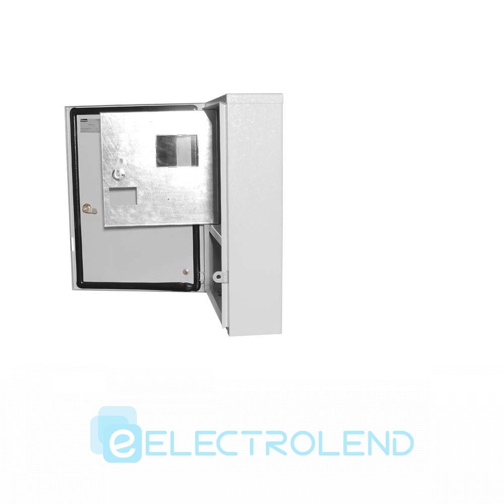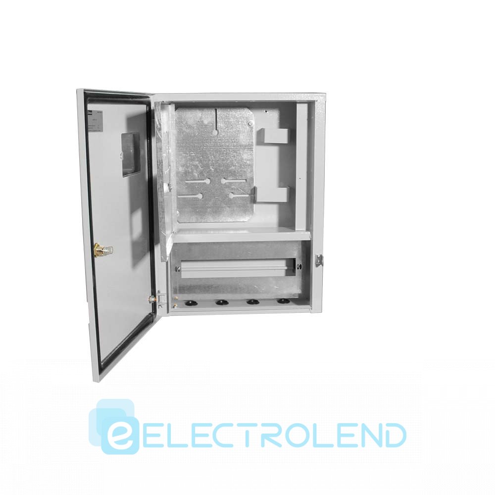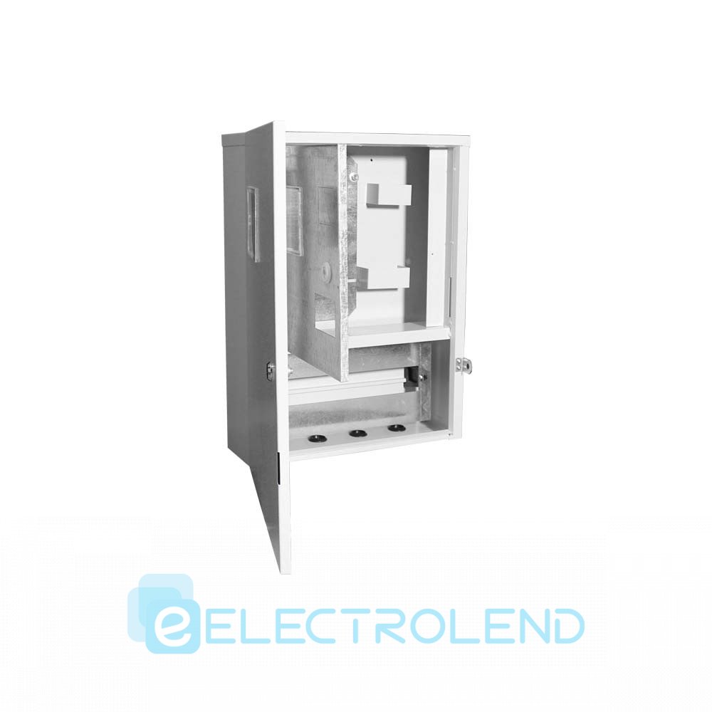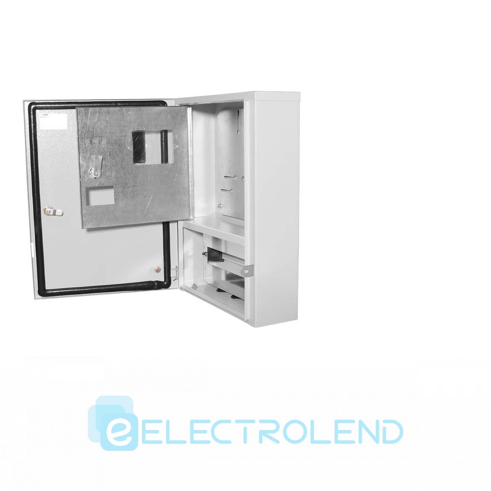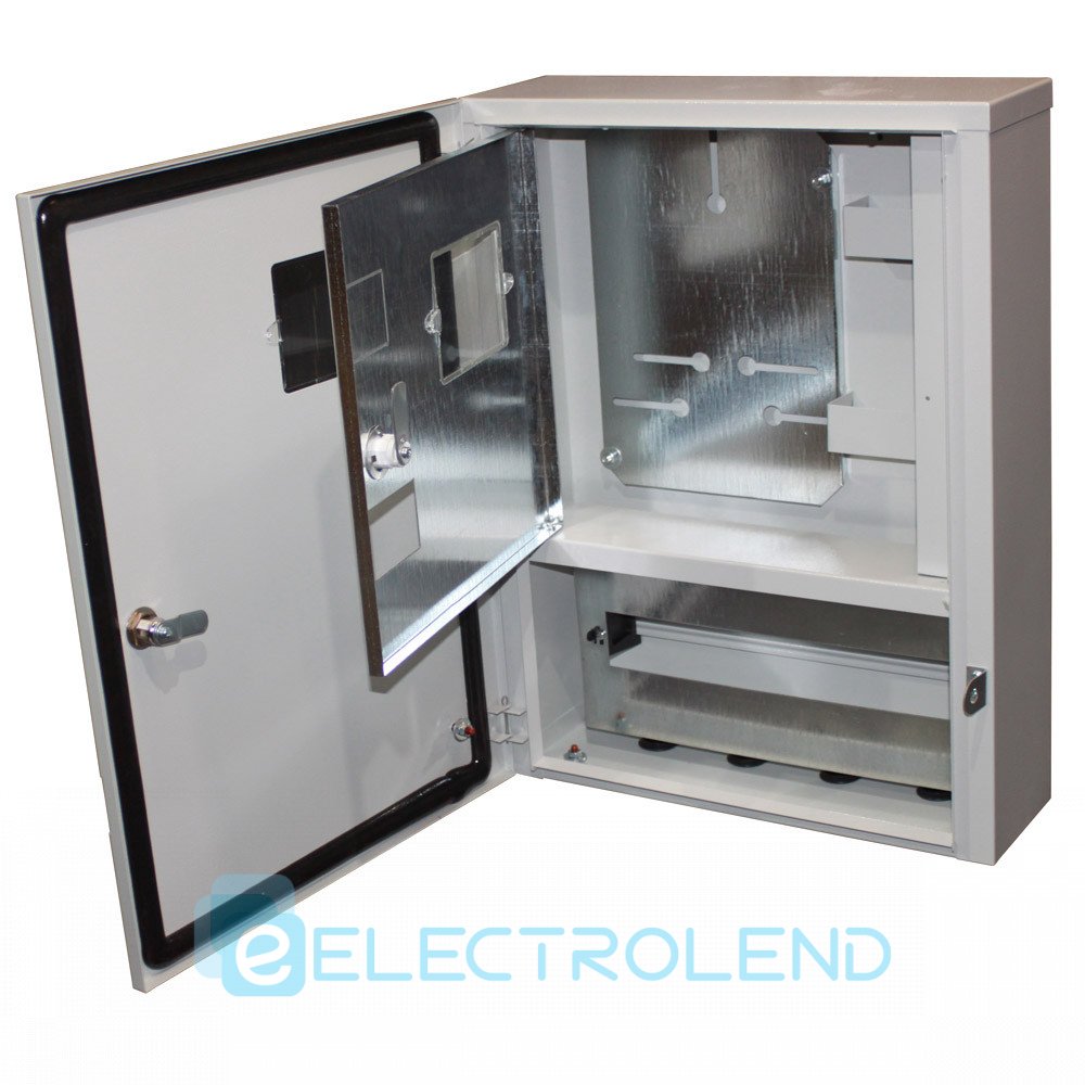 Двухдверный, под 1ф или 3ф счетчика, вводный 3-х полюсный автомат, УЗО, автоматические выключатели до 16 групп, с окном на внешних дверях для снятия показаний счетчика.