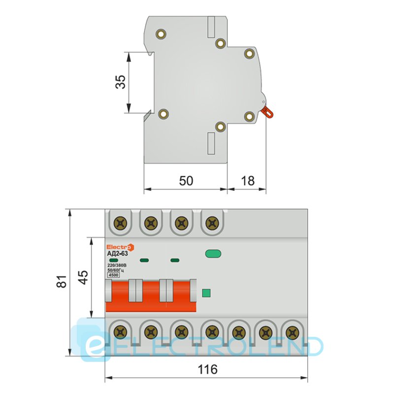 Диф. автомат АД 2-63 3Р+N 25А 30mA Electro
