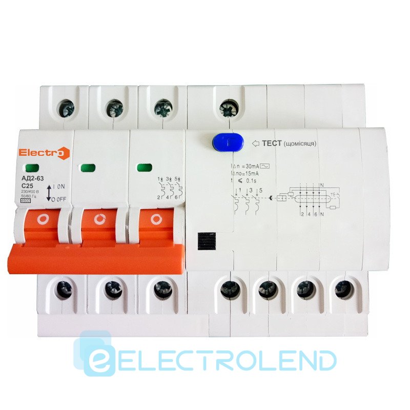 Диф. автомат АД 2-63 4Р 40А 30mA 4,5кА Electro