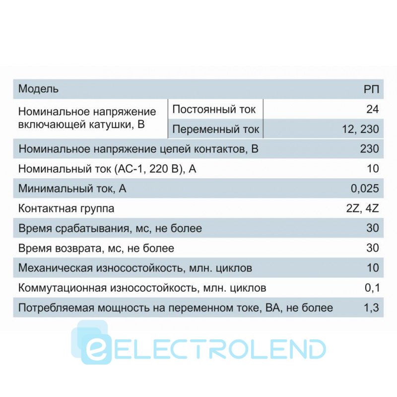 Реле промежуточное малогабаритное РП, контактная группа 4Z, 10А 24В DC Electro