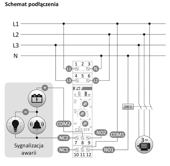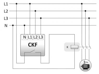 Датчик последовательности фаз и обрыва фаз CKF-319 TrueRMS предназначен для защиты электродвигателя, питаемого от трехфазной сети, в следующих случаях: