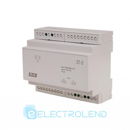 Трансформаторный. Входное напряжение 180-260В AC. Выходное напряжение 12В DC. Выходная мощность 25Вт.