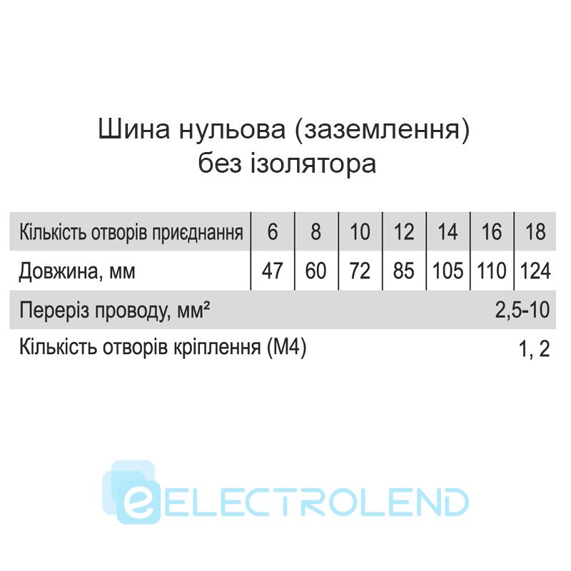 Шина нулевая, без изолятора, 6х9, 8 отверстий, до 63А, Electro