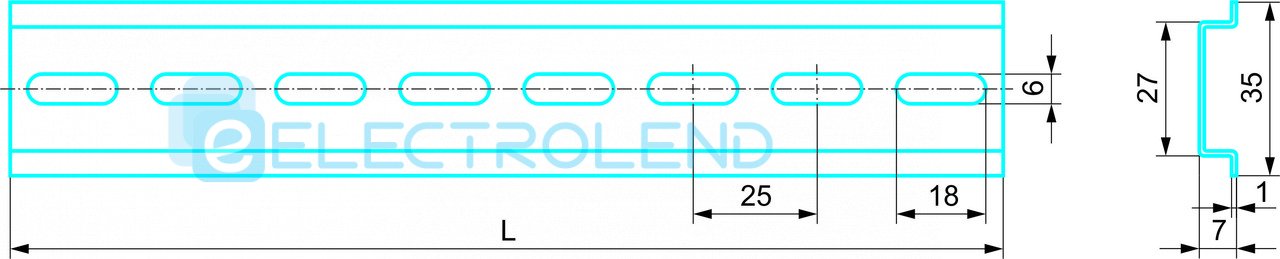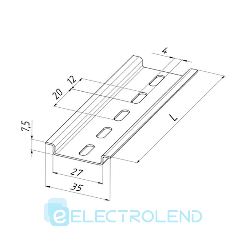 DIN-рейка длина 35х7,5х1000мм, 1 метр, оцинкованная, толщина 1mm, Electro