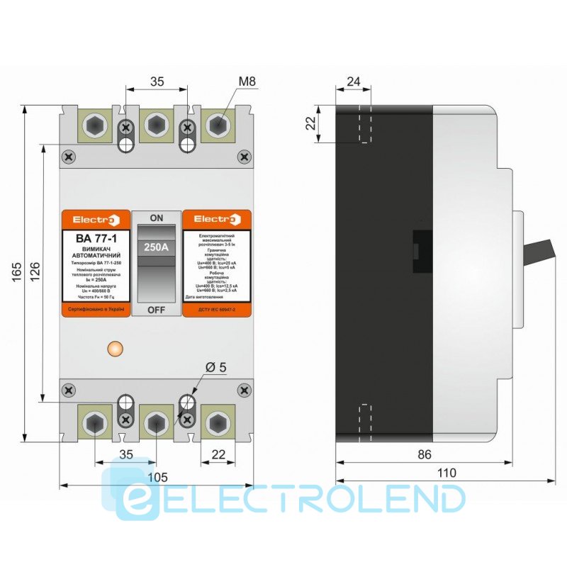 Автоматический выключатель ВА77-1-250, 3Р, 180А, 10In (8-12In), Icu 35кА, Ics 22кА, 400В, Electro