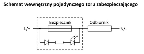 Ток сигнального диода (макс. 3 мА) все еще может протекать через цепь предохранителя, что в случае защиты приемников малой мощности (<10 Вт) может привести к появлению напряжения на выходных клеммах предохранителя и включению. сигнальных ламп, подключенных к выводу предохранителя.