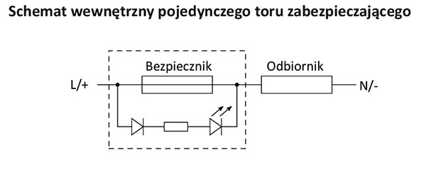 Ток сигнального диода (макс. 3 мА) все еще может протекать через цепь предохранителя, что в случае защиты приемников малой мощности (<10 Вт) может привести к появлению напряжения на выходных клеммах предохранителя и включению. сигнальных ламп, подключенных к выводу предохранителя.