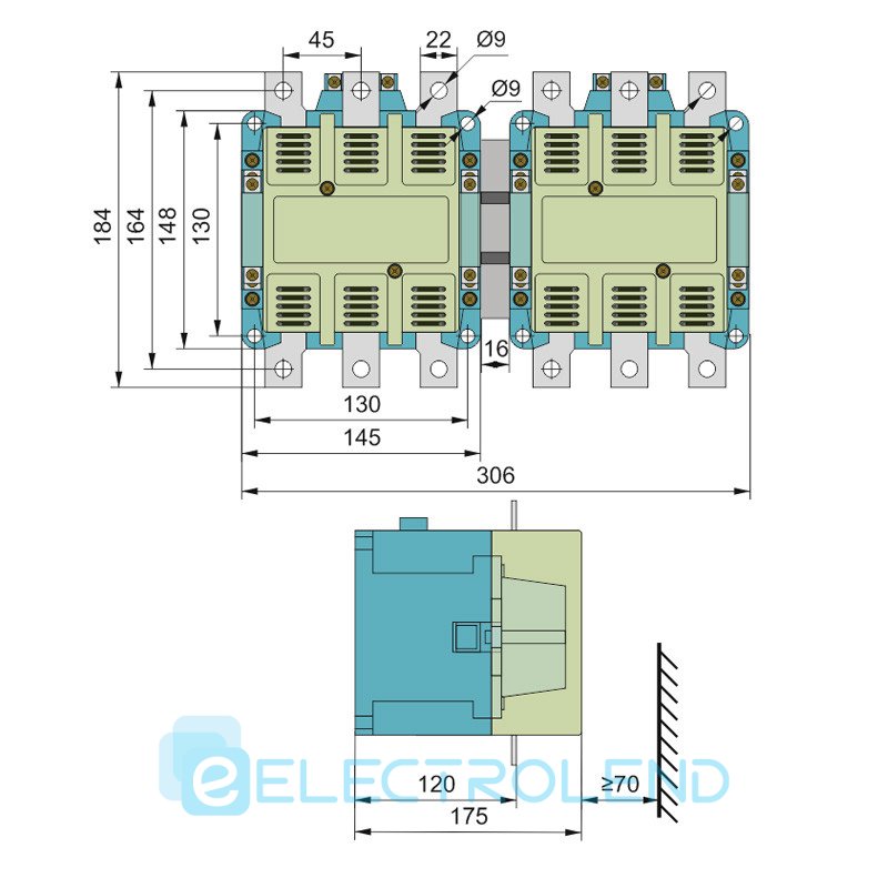 Контактор реверсивный ПМА-1-160А, 3Р, 230 / 380В (2 шт. + мех. блокировки БМ) ElectrO