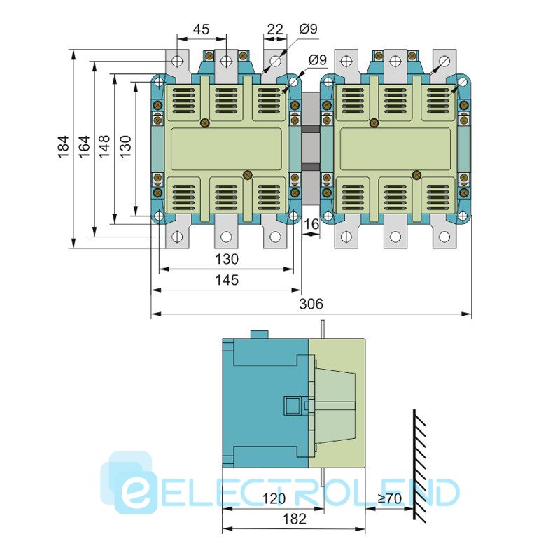Контактор реверсивный ПМА-1-250А, 3Р, 230 / 380В (2 шт. + мех. блокировки БМ) ElectrO