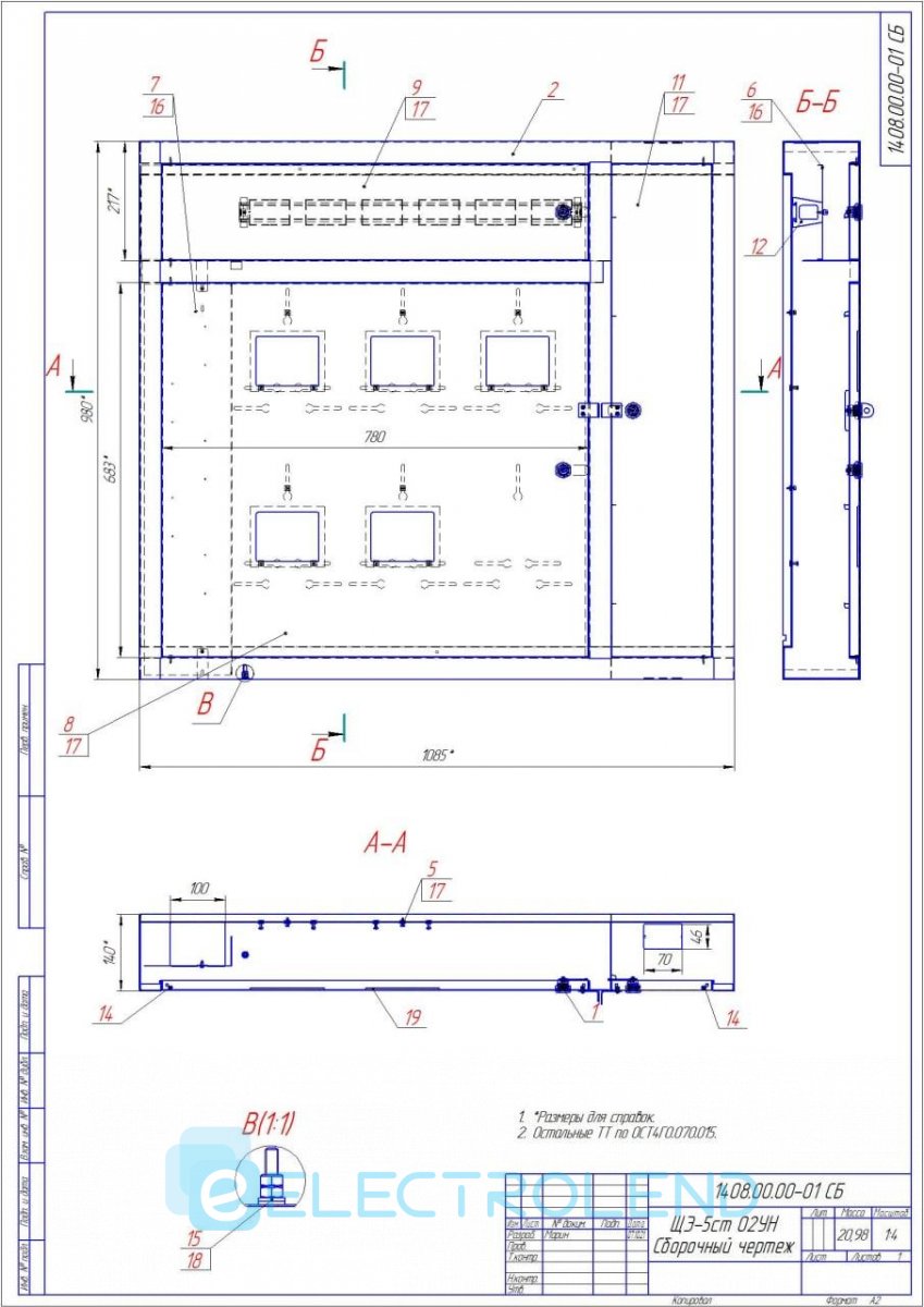 Щит этажный ЩЭ-5ст 02 УН 1085х980х140 навесной цельнокорпусный под 1ф-3ф счетчик Билмакс