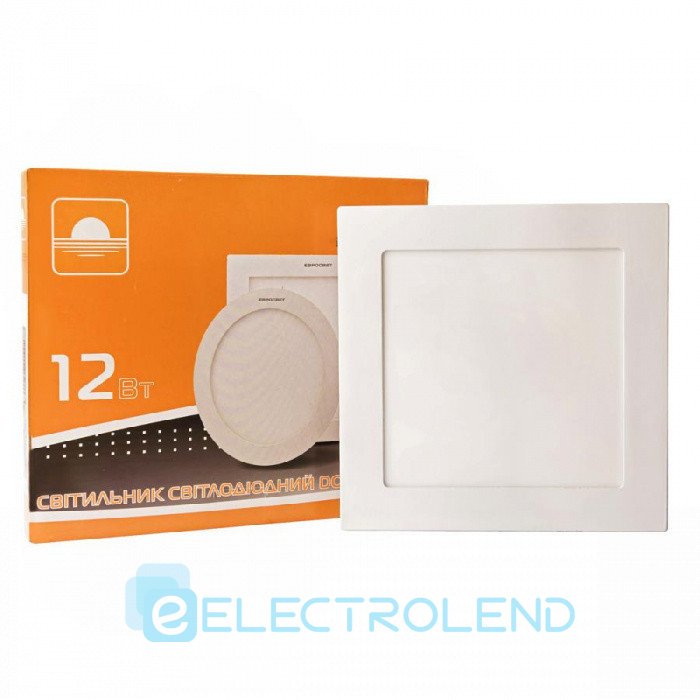 Светильник точечный врезной ЕВРОСВЕТ 12Вт квадрат LED-S-170-12 6400К предназначен для врезки в подвесные потолки и мебель. Так как это осветительный прибор с мягким холодным светом, то его устанавливают в рабочих помещениях: