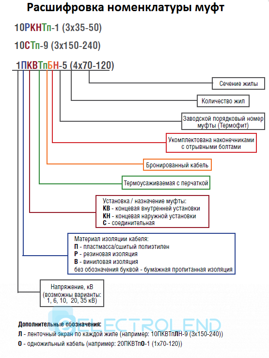 Термоусаживаемая концевая муфта 10КВТпН предназначена для оконцевания многожильных кабелей с бумажной пропитанной изоляцией.