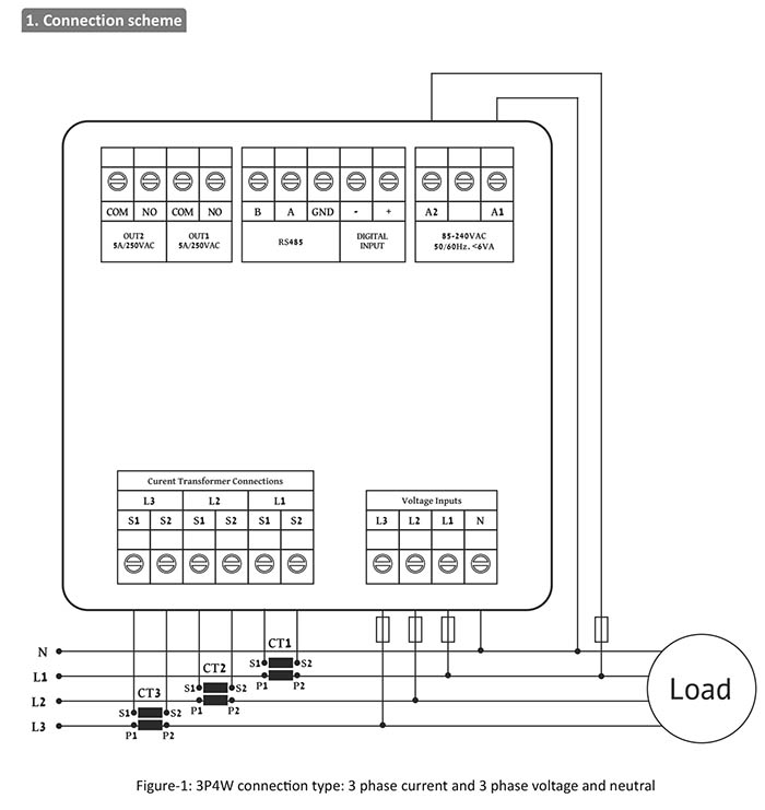Многофункциональный 3-фазный мультиметр со связью Modbus RTU, измерение электроэнергии в 4 квадрантах