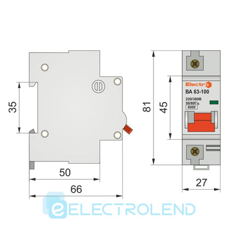 Автоматический выключатель ВА 63-100 6kA 80A 1P C Electro