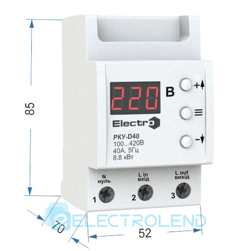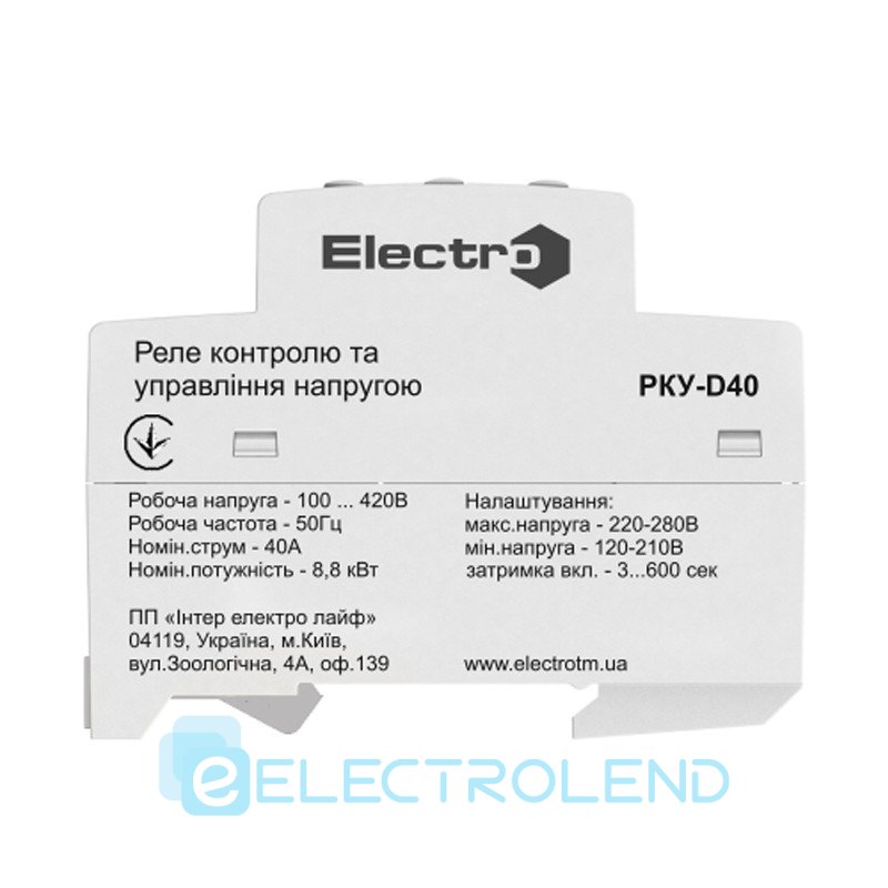 Однофазное реле контроля напряжения РКУ-D40 40А 230В Аналог ZUBR D40 Electro
