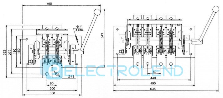 1,2,3-полюсный переднего присоединения с боковой рукояткой на изоляционной плите (ИП).