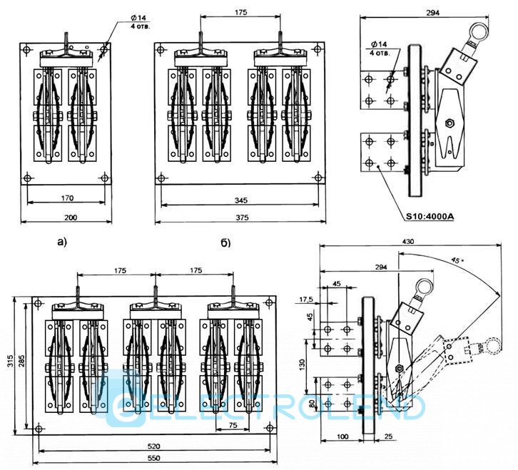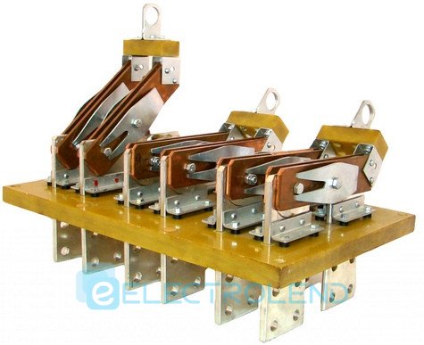Широкий выбор исполнений разъединителей РЕ19: по номинальному току, виду ручного привода, количеству полюсов, расположению контактных выводов. Изготавливаться разъединители могут на изоляционных секциях или на изоляционной плите. |