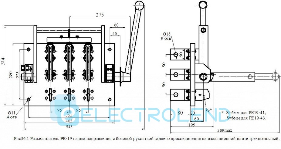 3- ПОЛЮСНЫЙ ЗАДНЕГО ПРИСОЕДИНЕНИЯ С БОКОВОЙ РУКОЯТКОЙ И БОКОВЫМ СМЕЩЕННЫМ ПРИВОДОМ НА ИЗОЛЯЦИОННОЙ ПЛИТЕ (ИП)