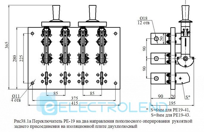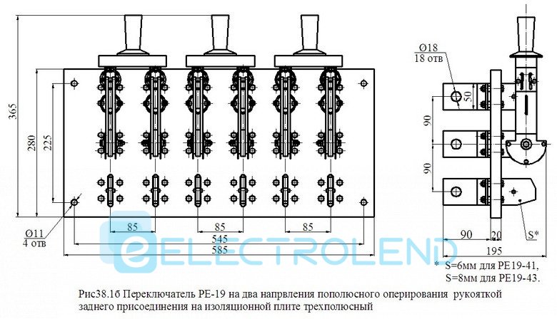 Широкий выбор исполнений разъединителей РЕ19: по номинальному току, виду ручного привода, количеству полюсов, расположению контактных выводов. Изготавливаться разъединители могут на изоляционных секциях или на изоляционной плите. |