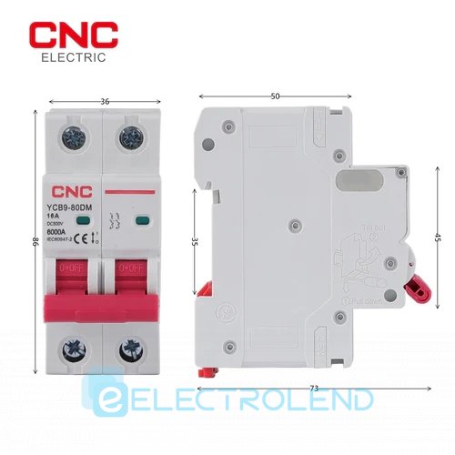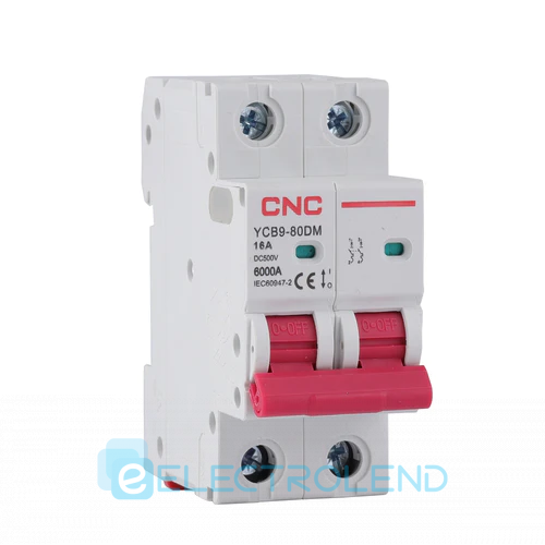 Модульный автоматический выключатель YCB9-80DM, 2Р, 25А, С, 6кА, постоянный ток, DC 500V, CNC