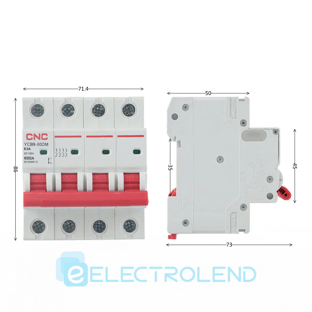 Модульный автоматический выключатель YCB9-80DM, 3Р, 4А, B, 6кА, постоянный ток, DC 500V, CNC