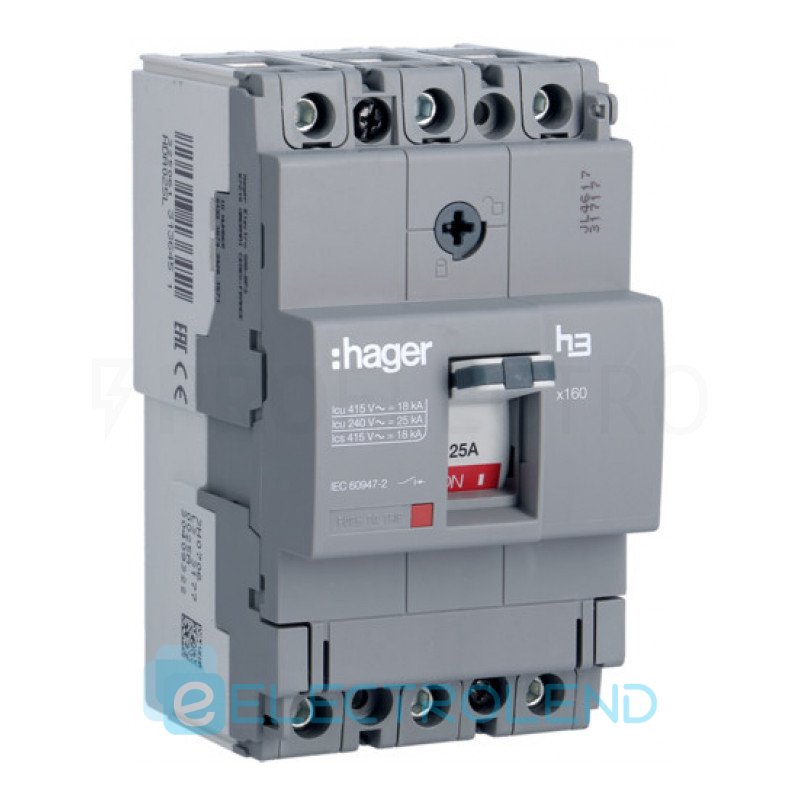 Автоматический выключатель HDA025L x160, In=25А, 3п, 18kA, Hager