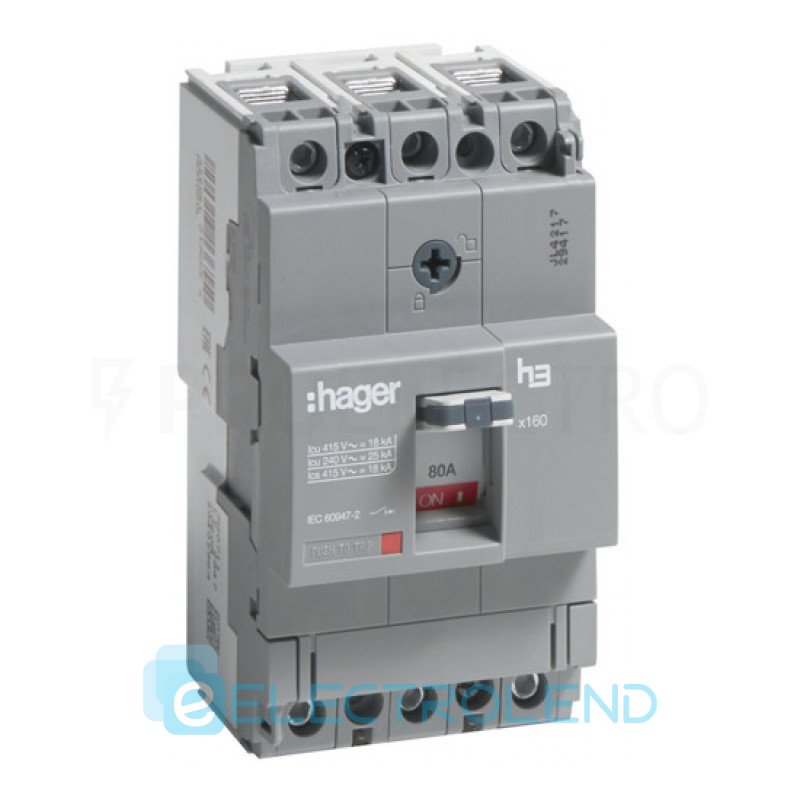 Автоматический выключатель HDA080L x160, In=80А, 3п, 18kA, Hager