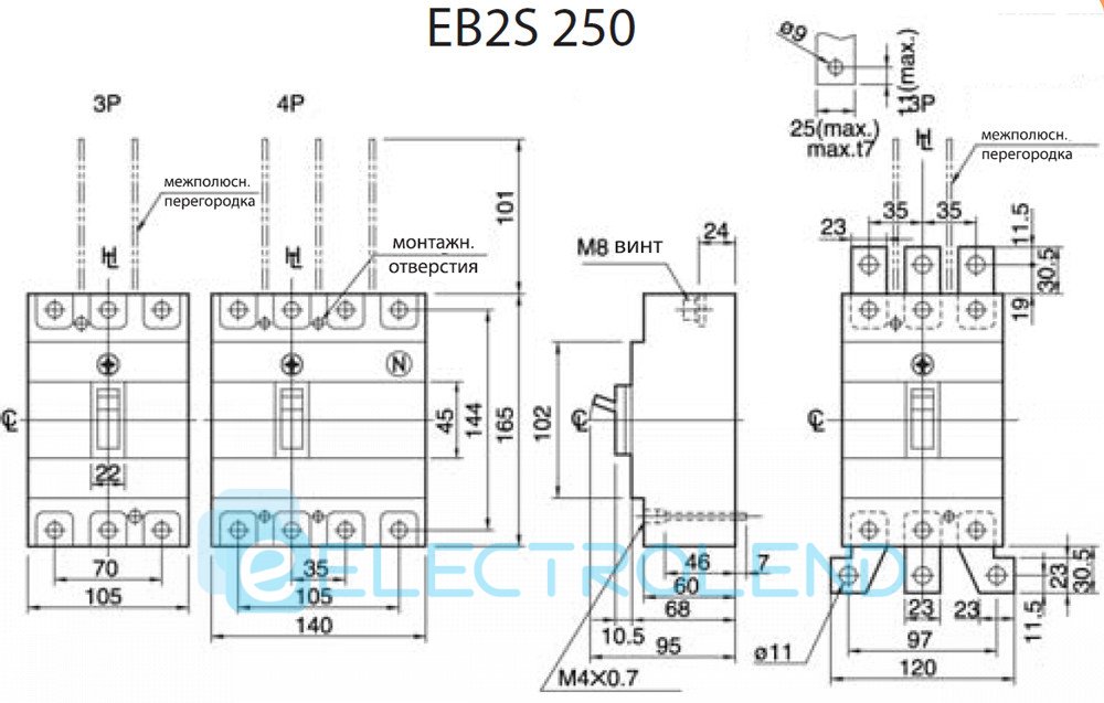 Автоматический выключатель ETI 4671812 EB2S 250/3LF 200А 3P (16kA фиксированные настройки)