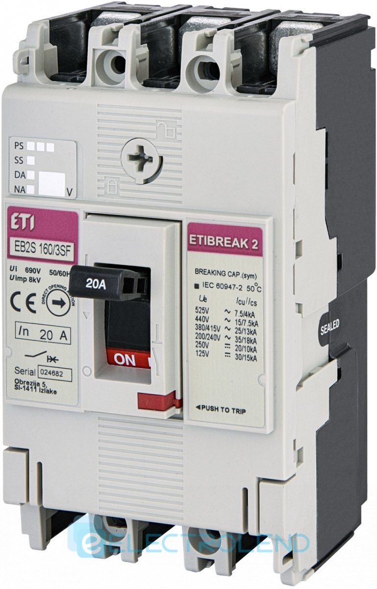 Автоматический выключатель ETI 4671828 EB2S 160/3SF 20А 3P (25kA фиксированные настройки)