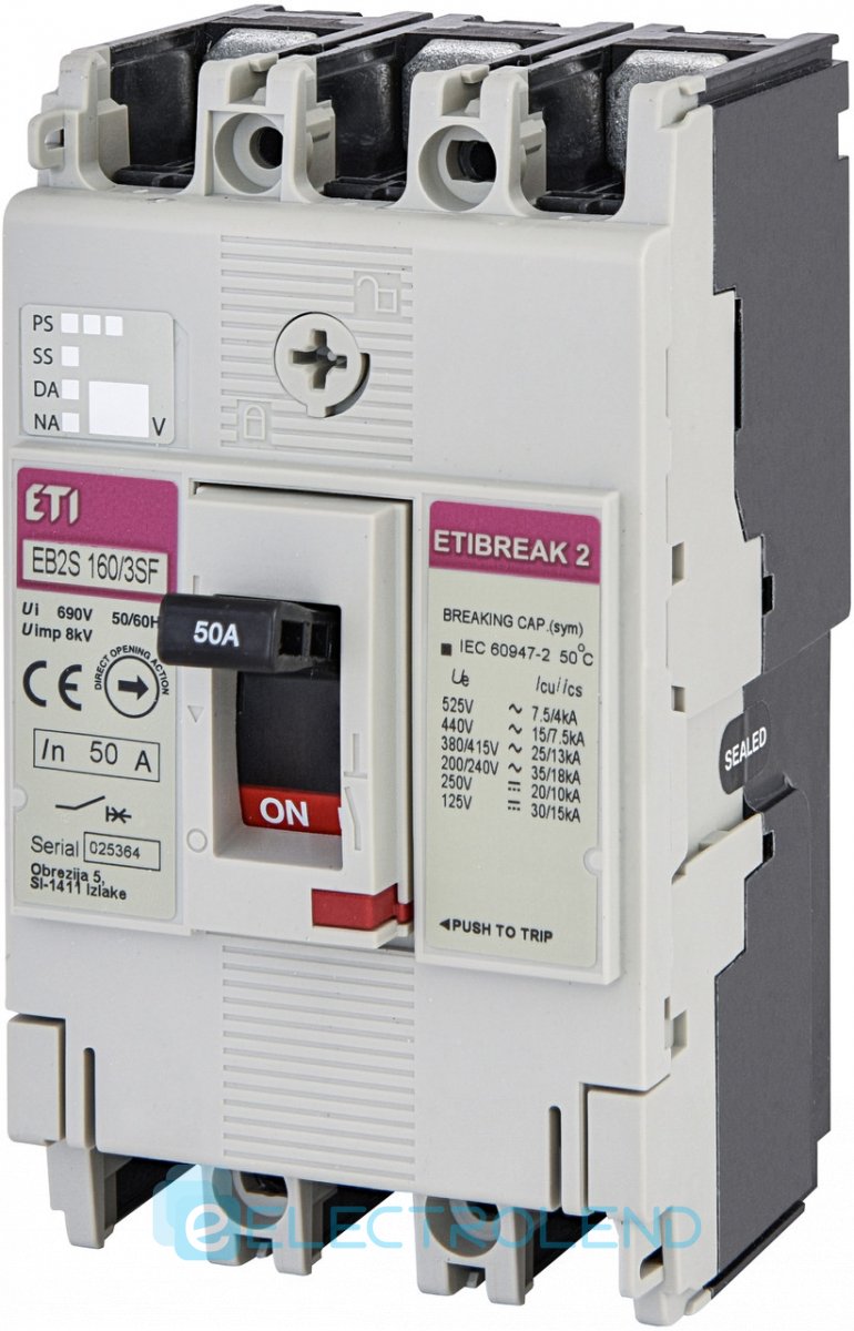 Автоматический выключатель ETI 4671832 EB2S 160/3SF 50А 3P (25kA фиксированные настройки)