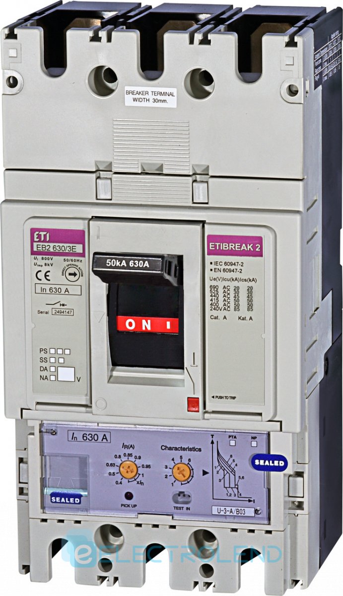 Автоматический выключатель ETI 4671127 EB2 630/3E 630А 3Р 50kA