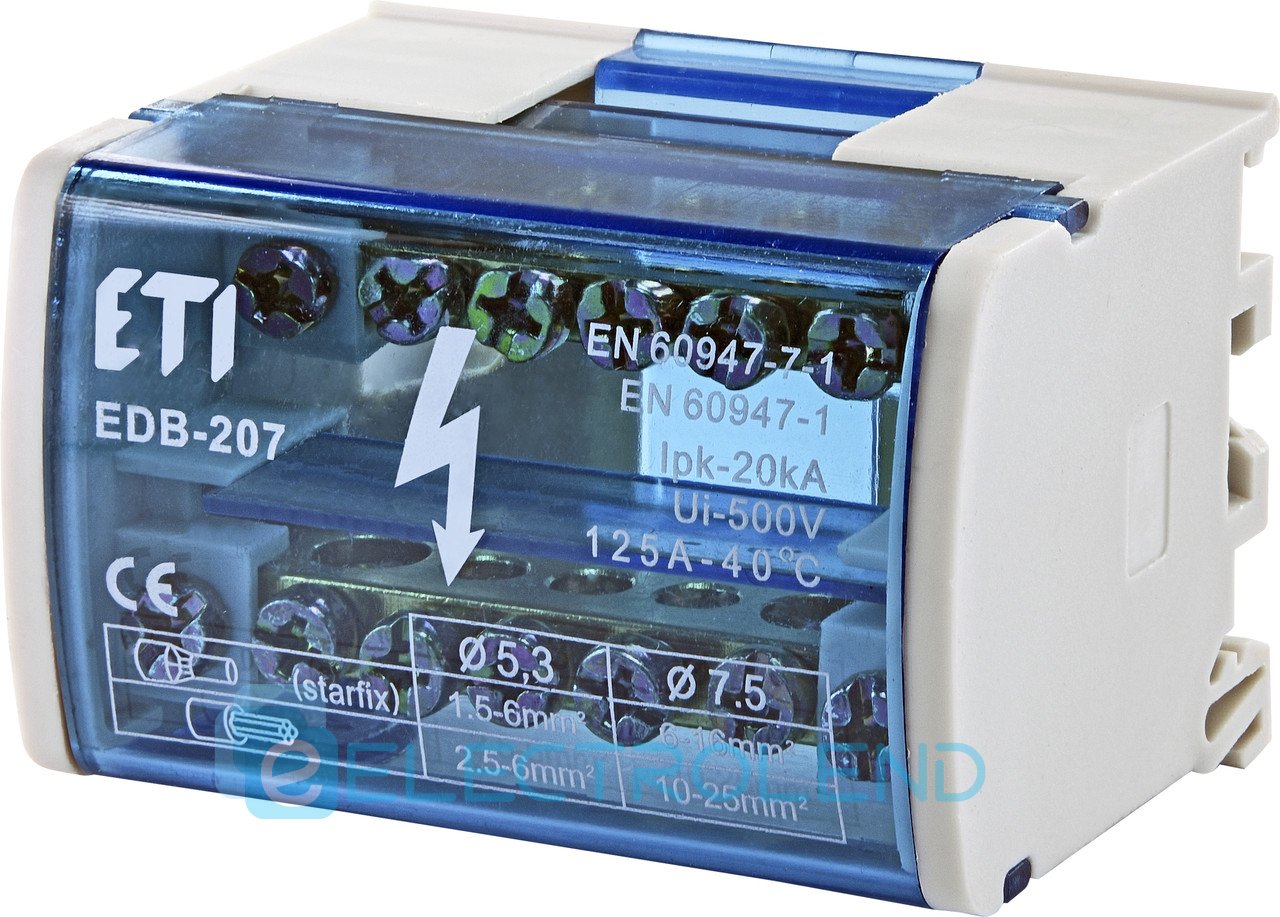 Блок распределительный EDB-207 2p L+PE/N 125A (7 выходов), 1102300 ETI