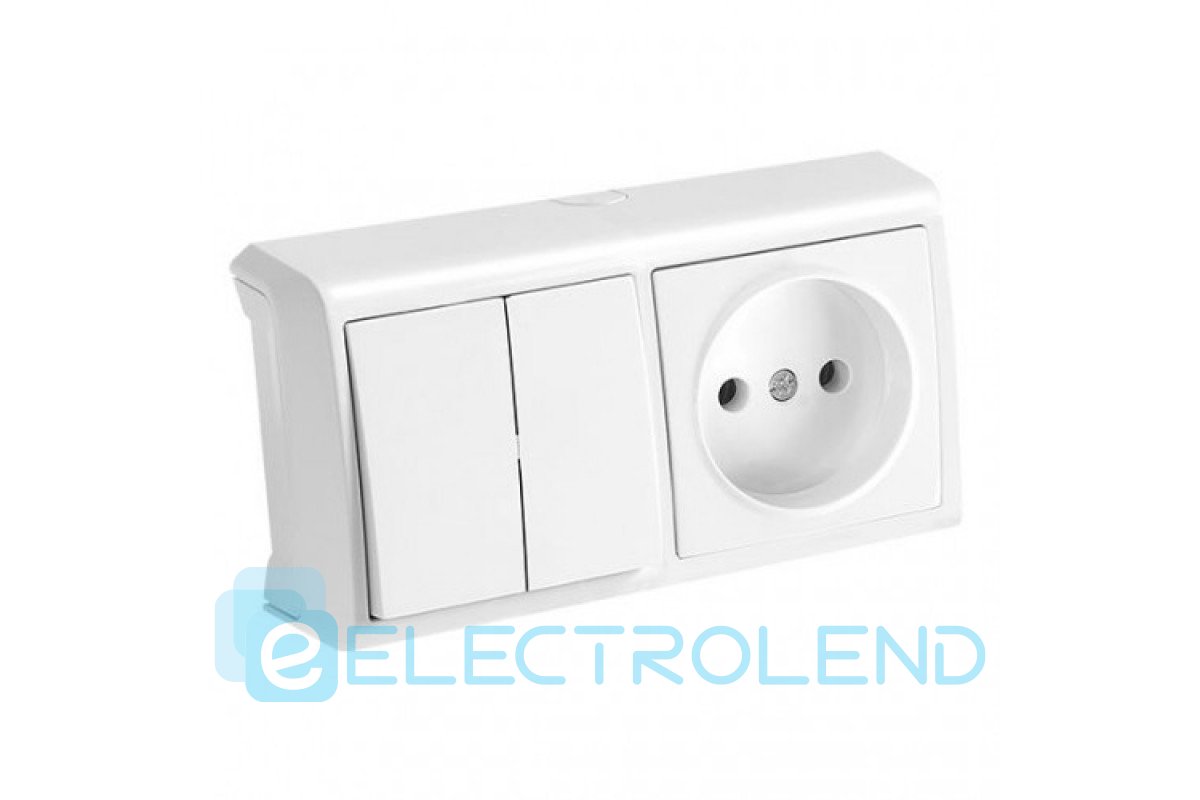 VIKO Vera (90681189) Горизонтальная комбинация выключатель двухклавишный + розетка наружная белая