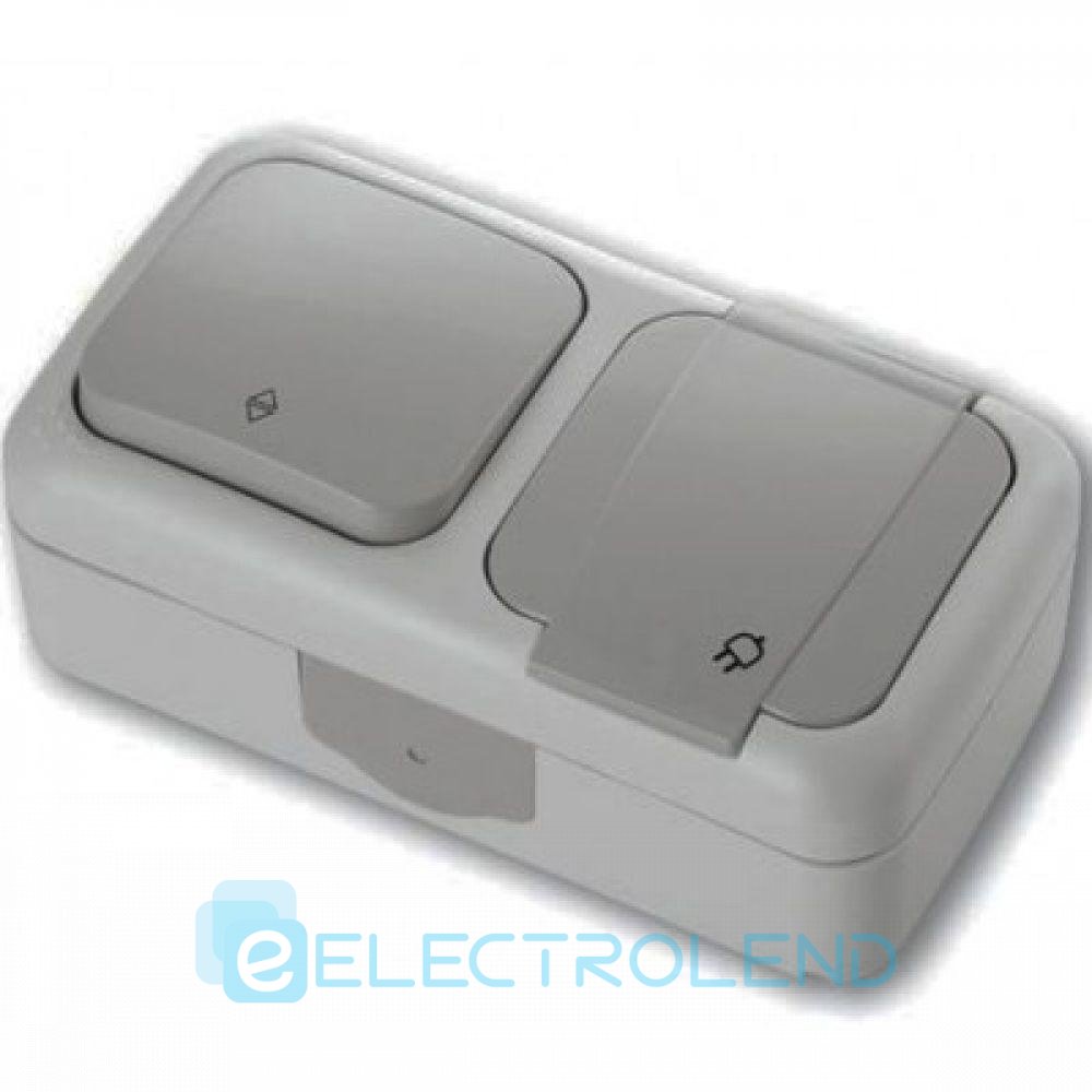 VIKO Palmiye (90555584) Выключатель проходной + розетка с заземлением наружный серый