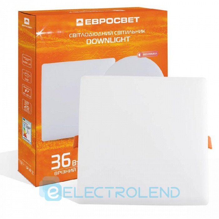 Светильник точечный врезной ЕВРОСВЕТ 36Вт квадрат LED-S-220-36 4200К без рамки 000057957