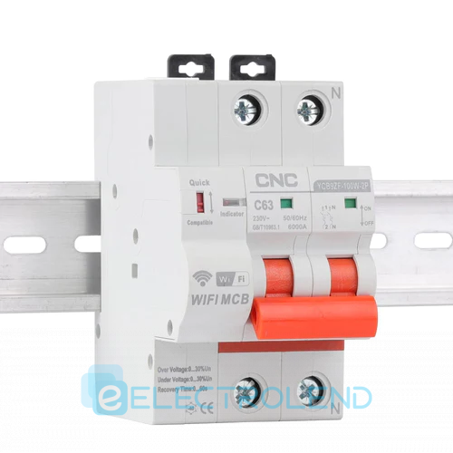 Модульный автоматический выключатель YCB9ZF-100W-2P 40A 6кА D с блоком дистанционного (wi/fi) управления CNC
