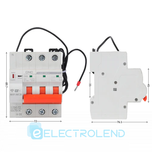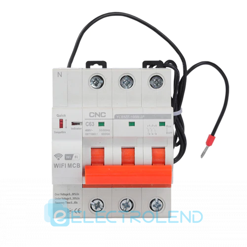 Модульный автоматический выключатель YCB9ZF-100W-3P 63A 6кА D с блоком дистанционного (wi/fi) управления CNC