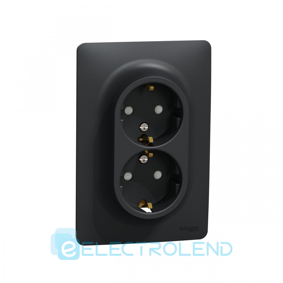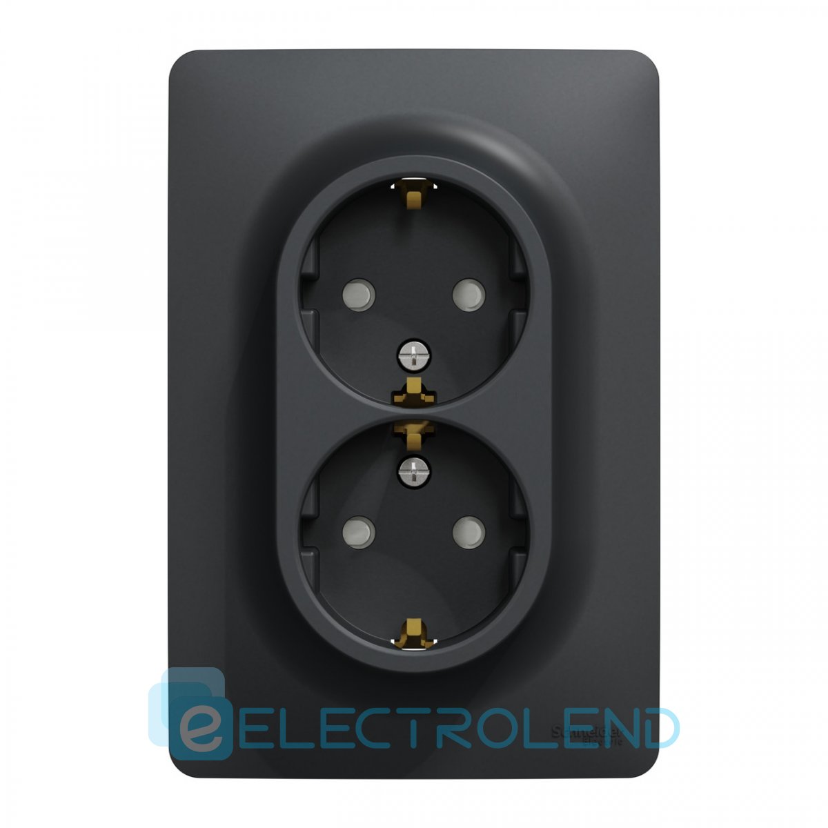 NU206754 Unica New Розетка двойная с заземлением, со шторками, 16А, антрацит Schneider
