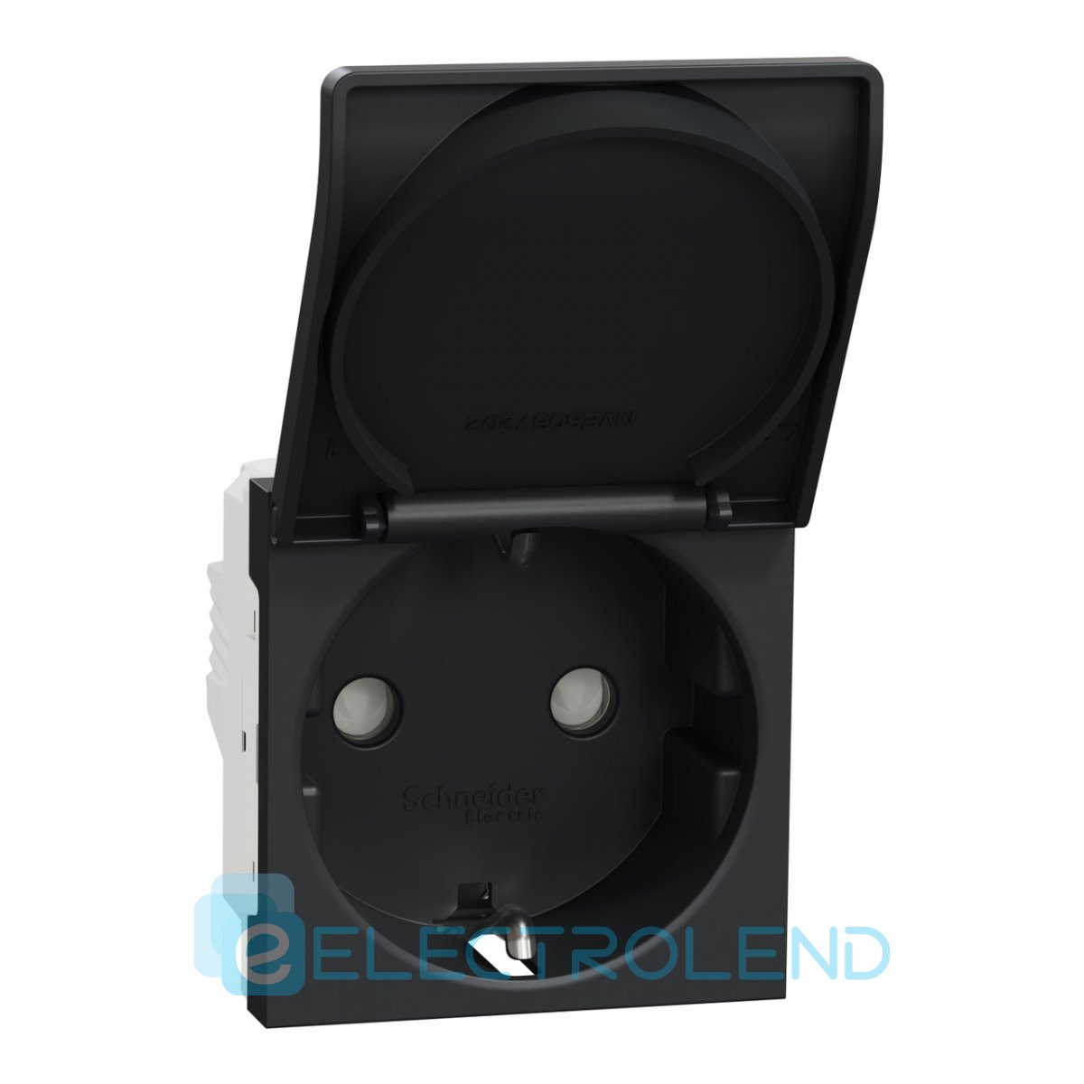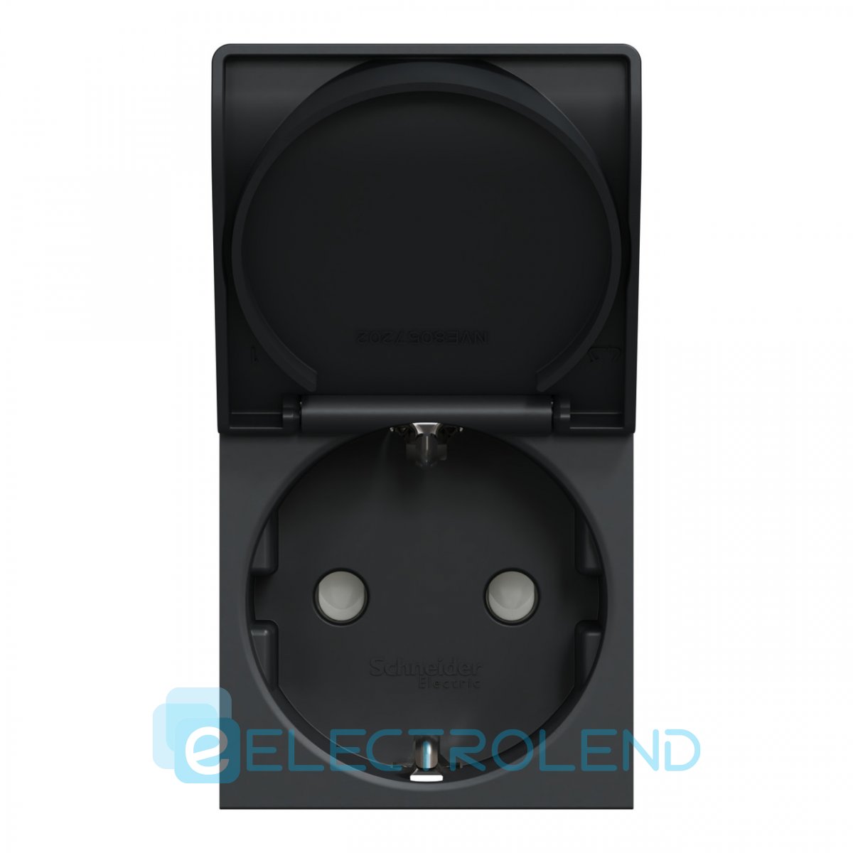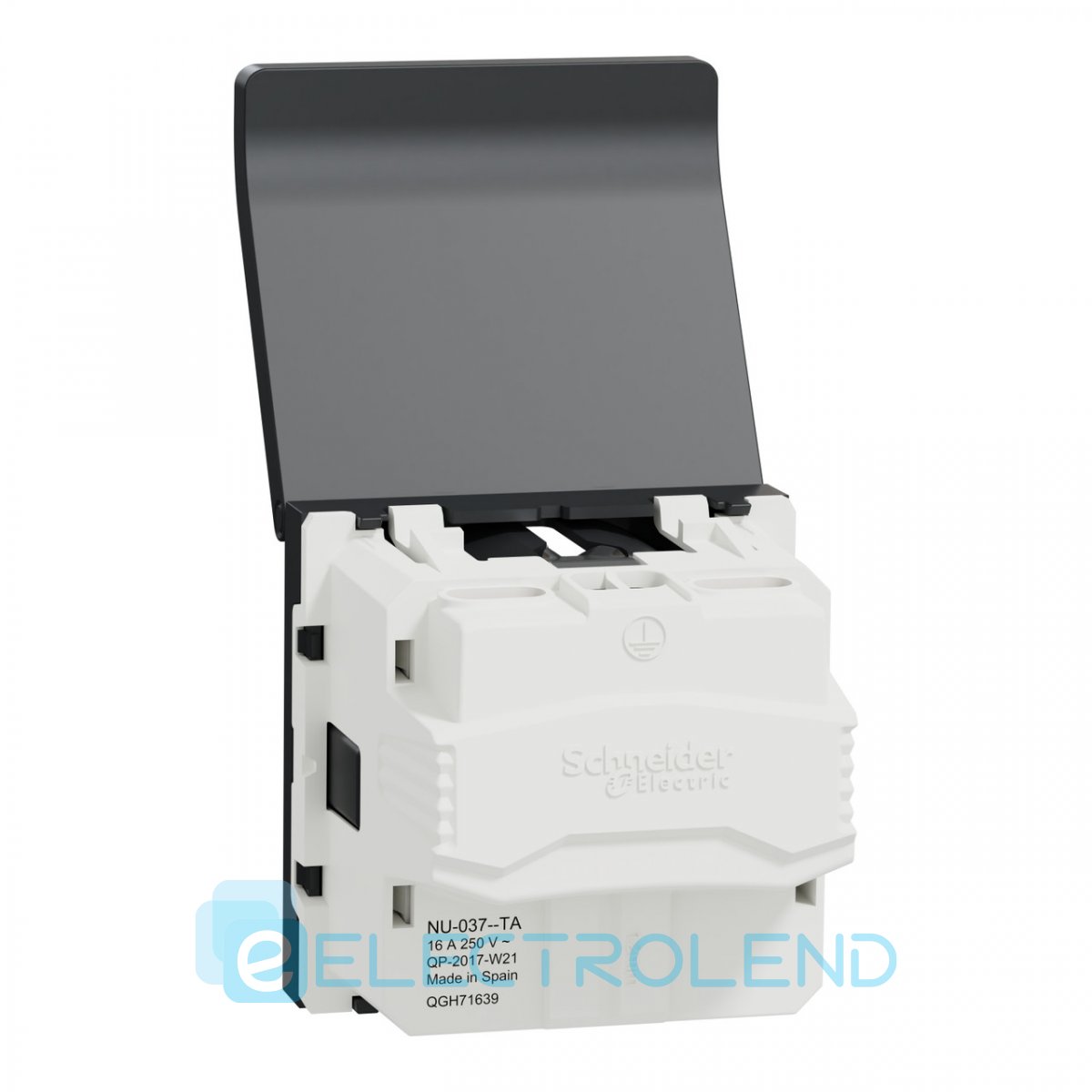 NU303754TA Unica New Розетка с заземлением, со шторками, с крышкой, 16А, антрацит Schneider