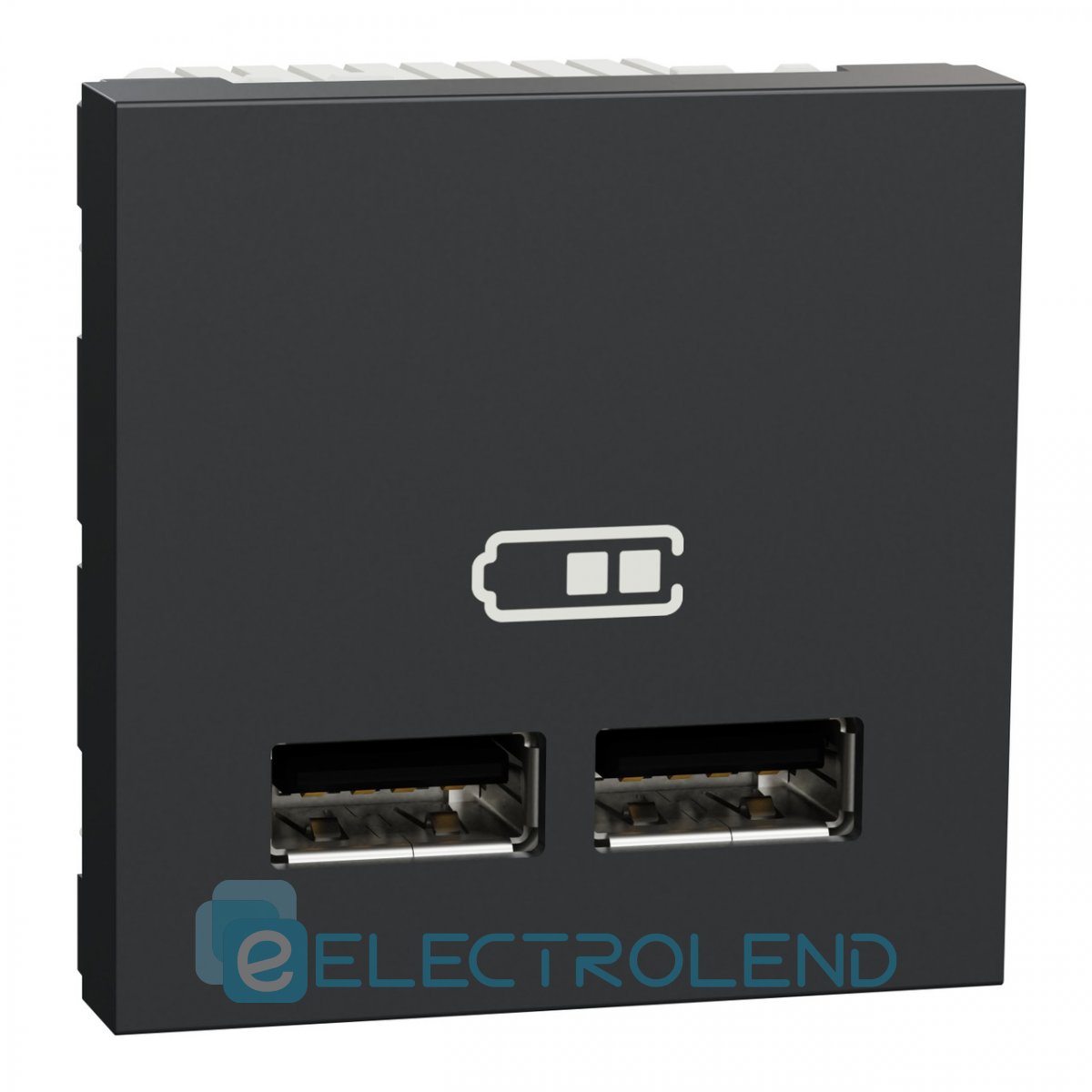 NU341854 Unica New Розетка USB двойная 2.1А 2 модуля антрацит Schneider