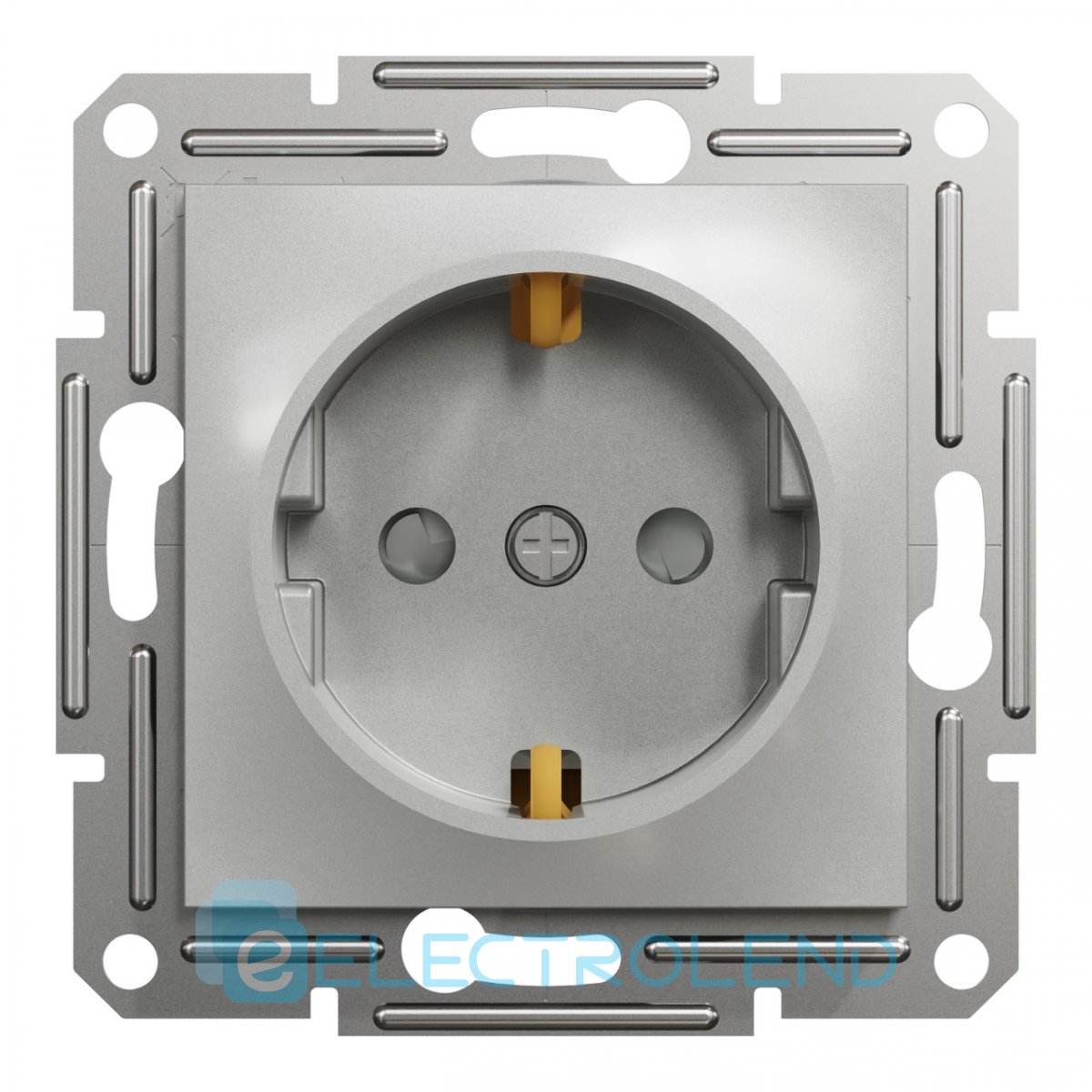 EPH2900261 Розетка с заземлением с защитными шторками алюминий Asfora Schneider Electric