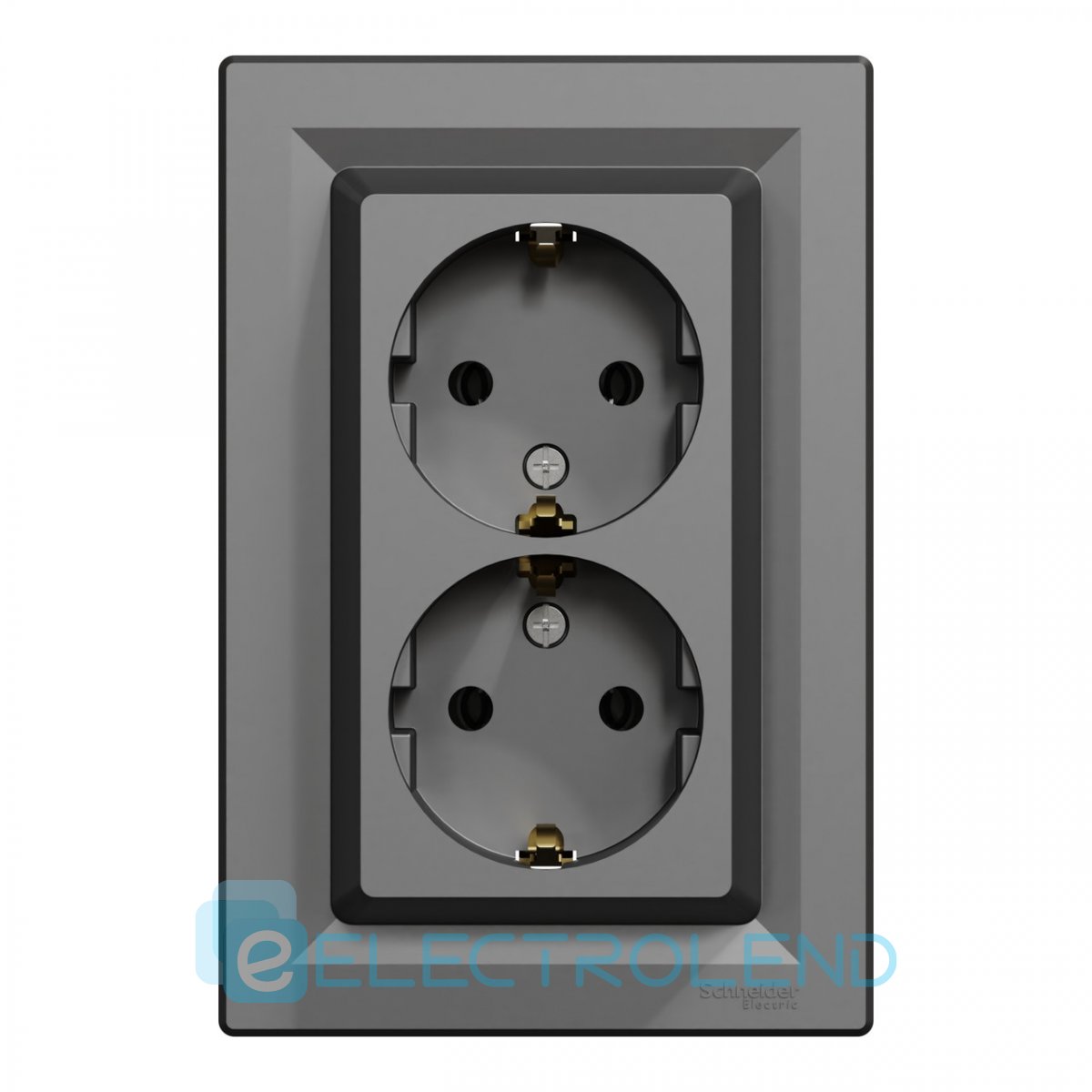 EPH9900171 Розетка двойная с заземлением антрацит Asfora Schneider Electric
