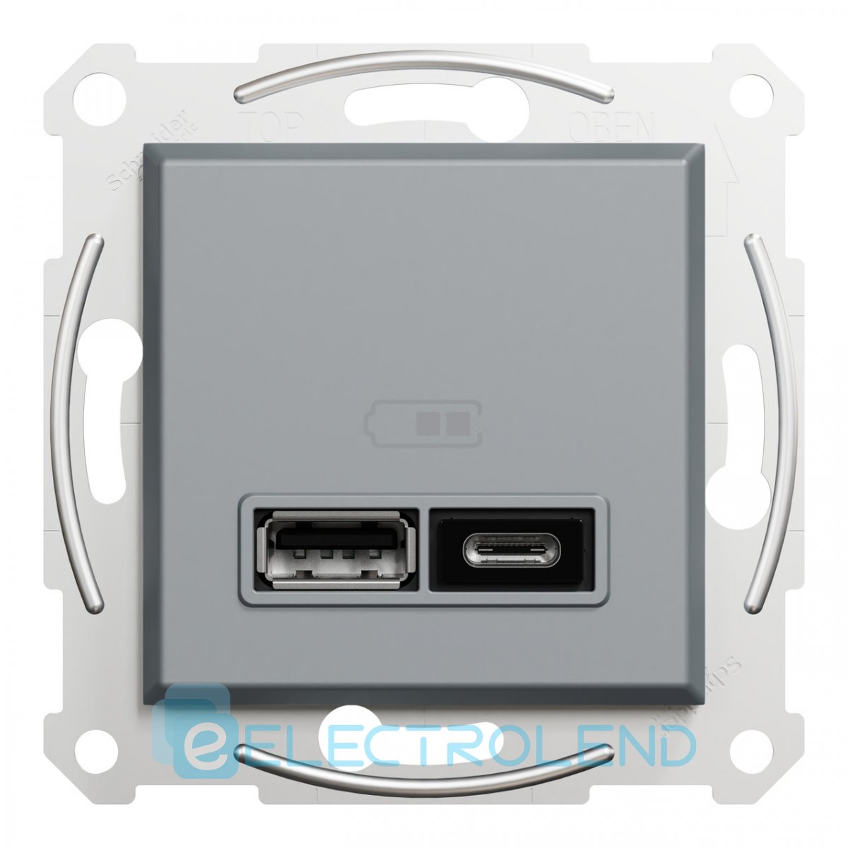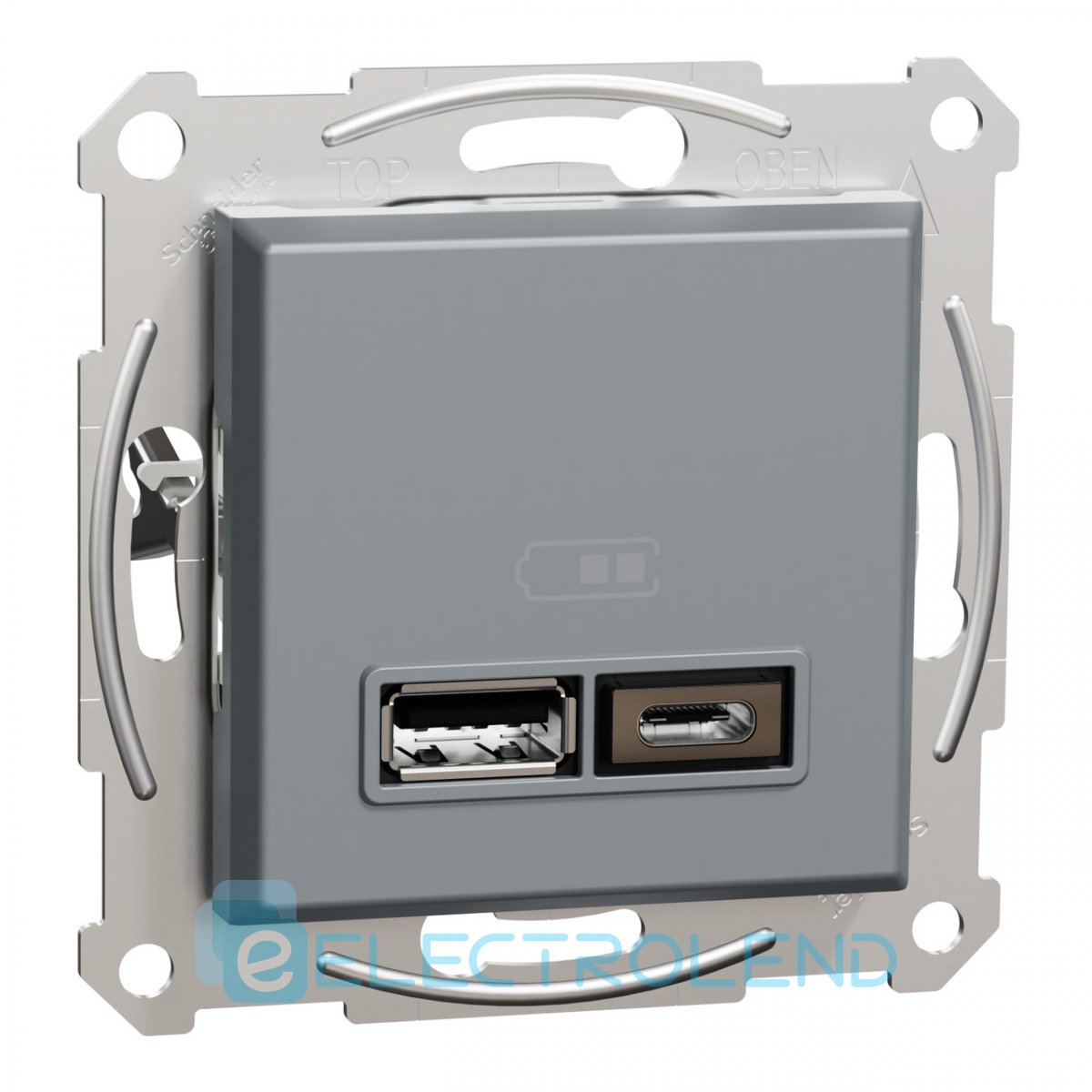 EPH2700362 USB розетка тип А+С 2,4A сталь Asfora Schneider Electric