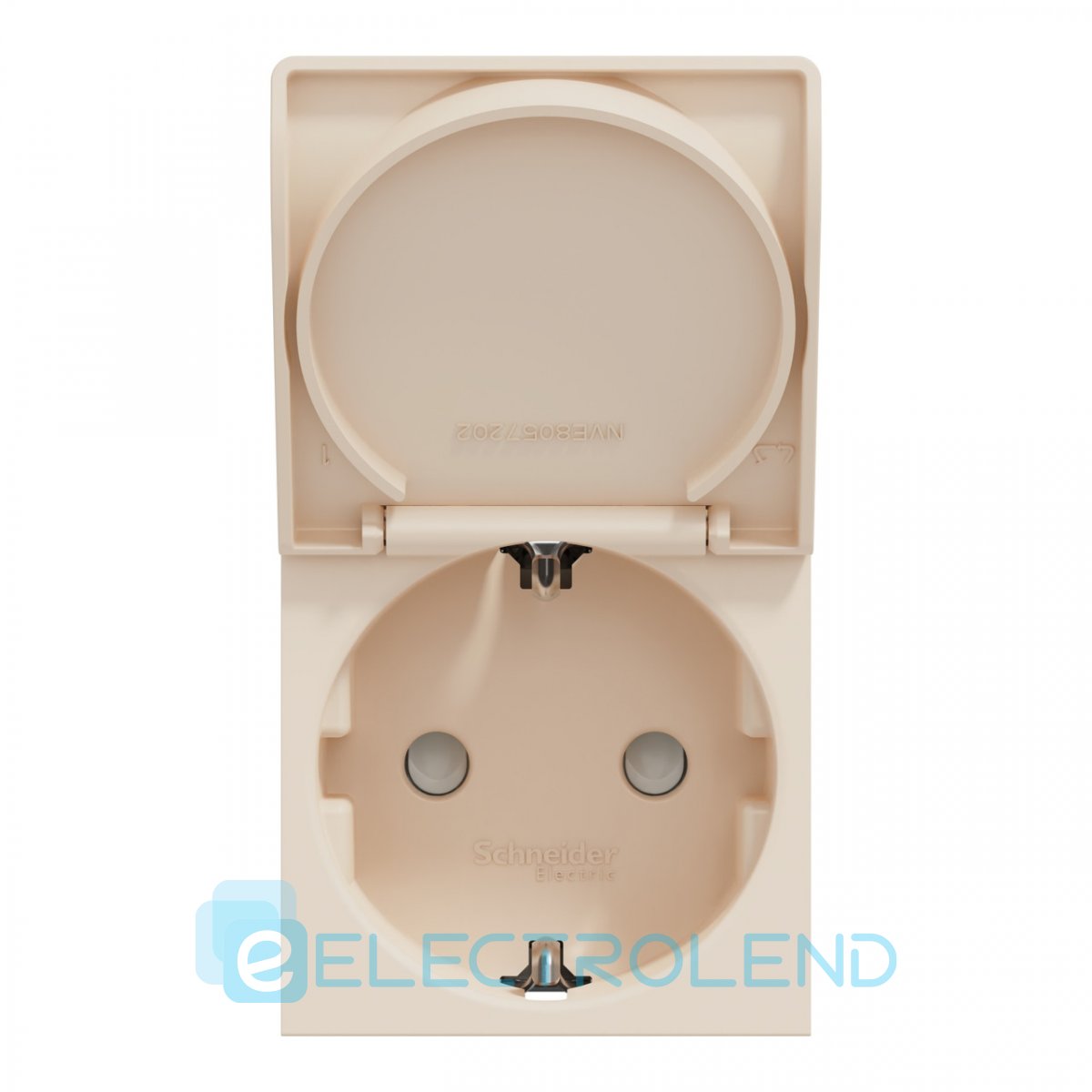 NU303744TA Unica New Розетка с заземлением, со шторками, с крышкой, 16А, бежевый Schneider