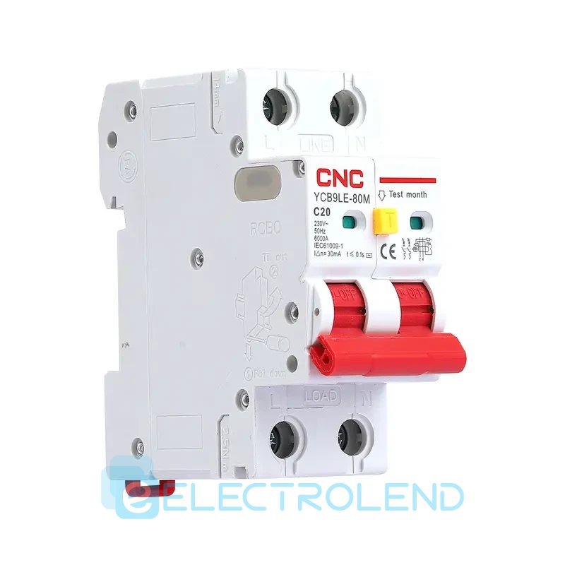 Дифференциальный выключатель YCB9LE-80M 80A 1Р+N 30mA 6kA С CNC