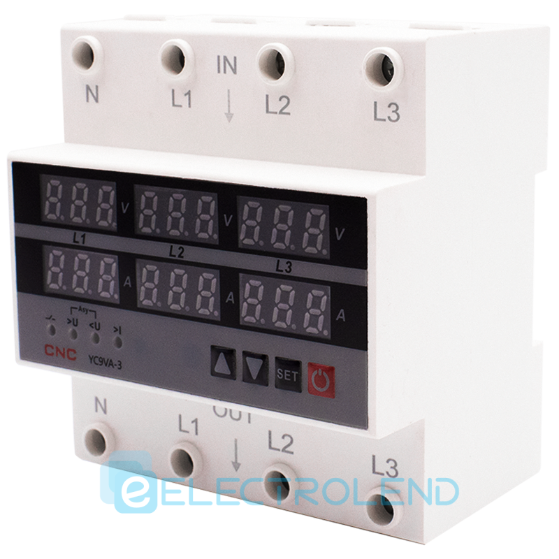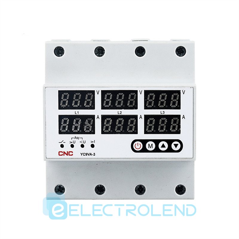 Модульное трехфазное реле YC9VA-3 аналог VP-3F63A контроля напряжения и тока AC230/400В 1-63А CNC