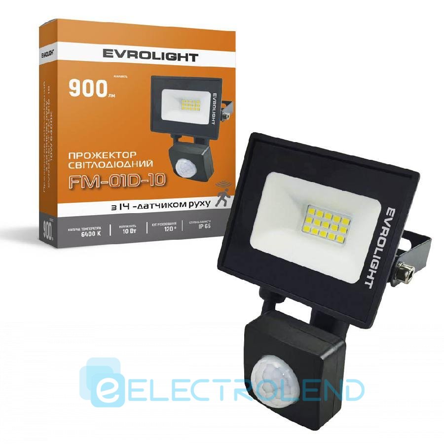 Прожектор светодиодный с датчиком движения EVROLIGHT FM-01D-10 10W 6400К 000057039