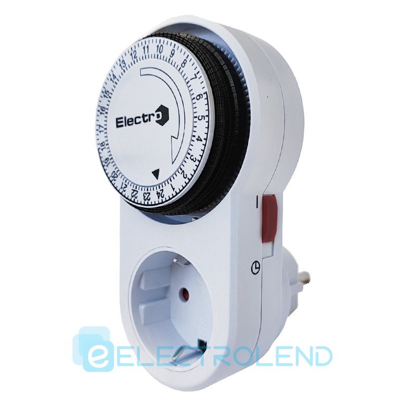 Таймер розеточный механический (суточный) предназначен для отсчёта интервалов времени, автоматического включения/отключения электроприборов через заданный промежуток времени в течение суток.